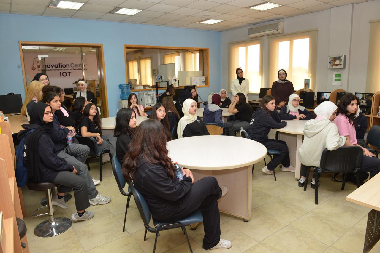 The Girls’ School – Jabal Amman organized a field visit to the University of Petra, with a delegation of 70 students from the Business and Technology tracks of the BTEC program. The visit aimed to introduce students to the university’s academic programs and facilities.